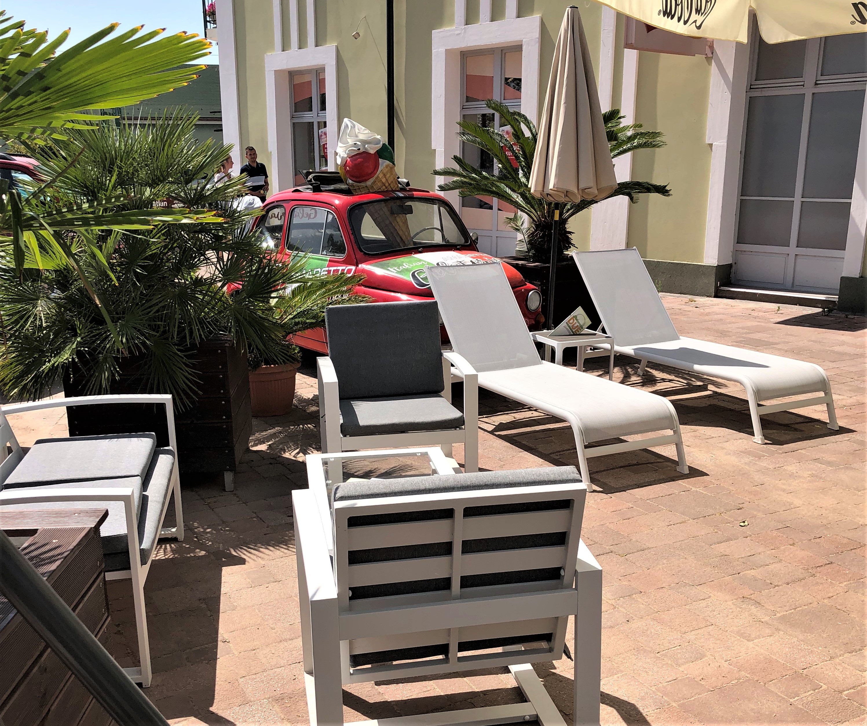Az Amaretto Due Cafe & Bar Balatonalmádiban a szökőkút közelében, a Baross Gábor út 4. szám alatt található. A kávézó minden nap 8:30 és 21:00 között várja vendégeit egy finom süteményre, kávéra, koktélra vagy light fagyira. A hely nyáron pálmafákkal díszített fedetlen kiülős résszel üzemel, amely tengerparti hangulatot idéz egy figyom fagyi elfogyasztása közben. A kávézóban hagyományosabb és különlegesebb sütemények is kaphatók, választékban megtalálható az oreo torta szelet, erdeigyümölcsös sajttorta, mákosguba tortaszelet, dobostorta szelet, házi krémes, málnás-krémes, mignon stb. A kávézó megrendelésre vállalja torták elkészítését is, így jó választás lehet születésnap, névnap, ballagás, keresztelő vagy más ünnepek alkalmával. Az Amaretto Due-ban a sütemények mellett kézzel készült fagylaltokkal várják a vendégeket. A kínálatuk különlegessége, hogy szinte minden fagyi light változatban készül. A light változat mellett választhatjuk a steviával készült teljesen cukormentes változatot is. Az ételallergiásoknak sem kell kimaradniuk a hűsítő finomságokból, ugyanis tej- és gluténmentes fagylalt is kapható. A fagyipultban minden fagylalt mellett egy kis tábla mutatja, hogy light, cukormentes, tejmentes, gluténmentes fagyiról van-e szó, így az erre érzékenyeknek is könnyű dolguk van. Választhatunk 100% gyümölcsből készült fagyit is, ilyen például az eper, a mangó, a meggy-banán és a vörösboros málna. A választékban szerepel még mohito, mogyoró, vanília, Ferrero rocher, málnás-joghurt és csokoládé fagyi is, mindegyik light verzióban. Egy 7 dkg-os gombóc fagyi 300 Forintba kerül, melyet a sima tölcsér mellett édes vagy gluténmentes tölcsérben is kérhetjük.